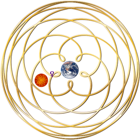And an intriguing paradox is that the perfection of the geometrical imprints the journey of Venus creates through the Zodiac in relation to the Earth, is only approximate. About 99%. Perhaps an apt formula for love and beauty themselves reminding us that perfection encompasses all that is.