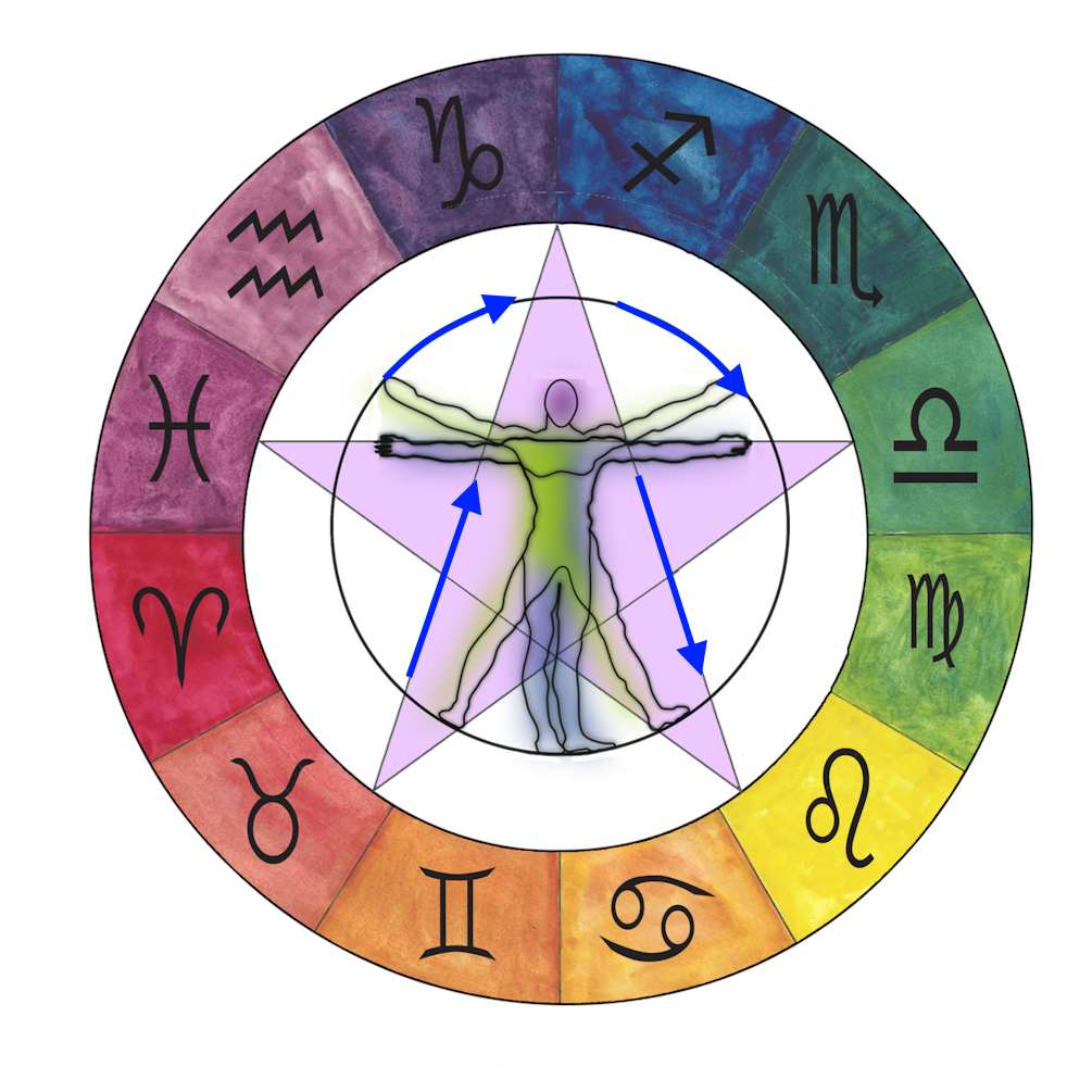 Every child who has been taught how to draw a star has this pattern of Venus’ trajectory through the Zodiac ingrained as common knowledge. The five points of the Star are moreover connected in the birth chart in a way that can be understood as head, arms and legs, illustrated by the symbol of the Vitruvian Wo(Man) placed inside the Star.